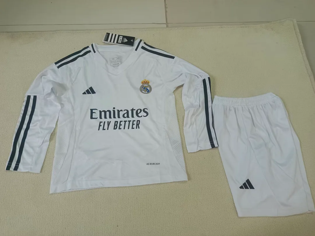 2024/25 Real Madrid Home Long Sleeve Jersey - Kids Set
